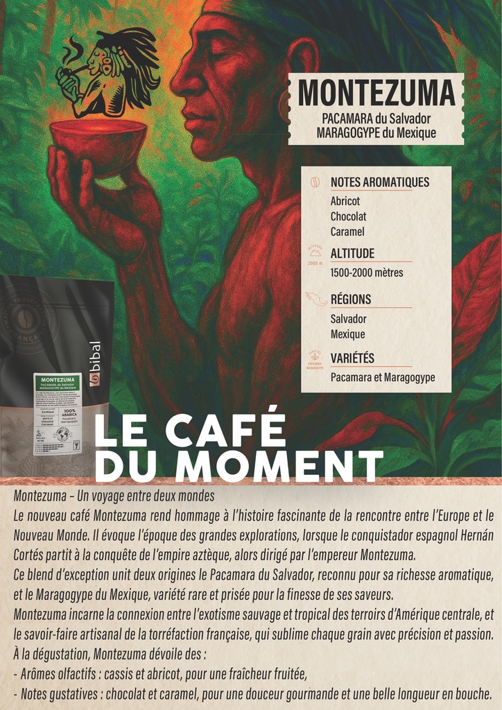 Le café Montezuma, illustre une rencontre entre 2 mondes, la connexion entre l'Amérique latine et la France. Les terroirs d'exception d'Amérique centrale et le savoir-faire de la torréfaction artisanale française se mélange, offrant un blend d'exception à la fraîcheur fruitée, la douceur gourmande et une belle longueur en bouche.