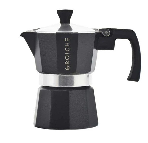- Cafetière italienne noire Grosche (3 tasses – 150 ml) : Design premium pour préparer un café corsé et parfumé.